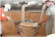 20 hydraulic pressing machines and 2 high-frequency pressing machine. Can load up multiple moulds on each machine. The steam is applied to speed up the adhesion.